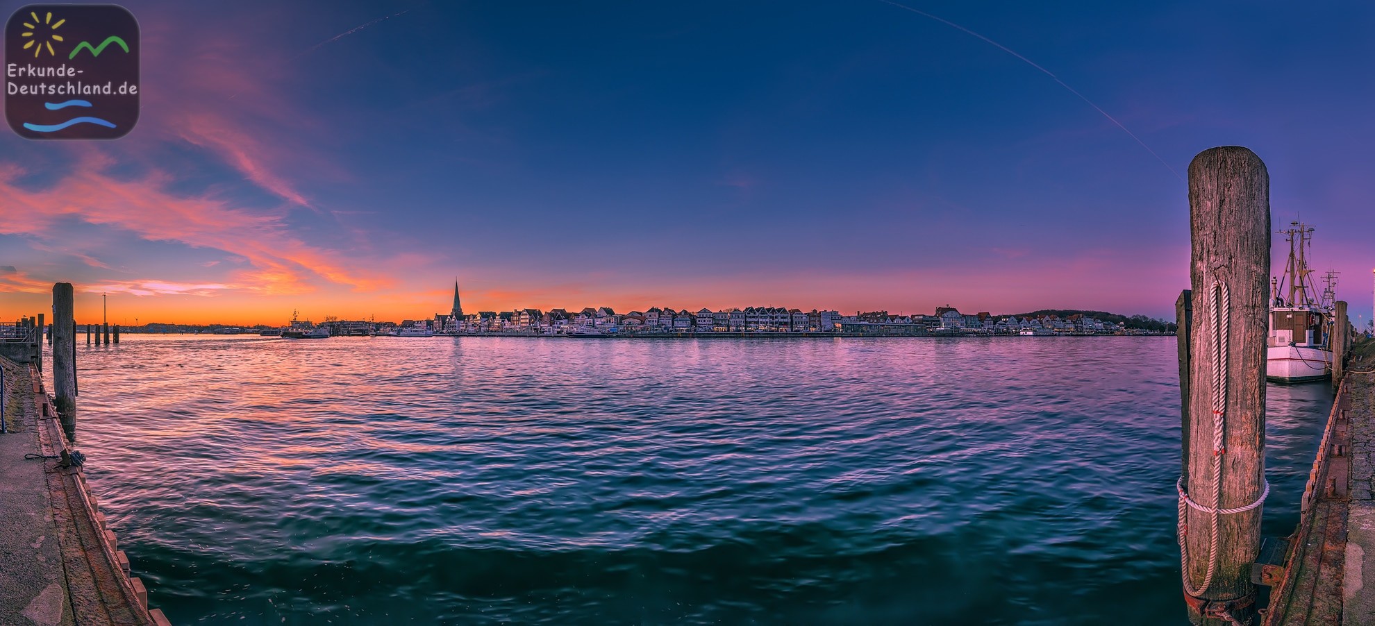 Wenn die Sonne langsam über der Trave versinkt und sich das Wasser in goldenen und violetten Tönen spiegelt, entfaltet sich der ganz besondere Zauber von Priwall. Vom ruhigen, angrenzenden Strand aus genießen Sie einen ungestörten Blick auf den Hafen, die vorbeiziehenden Boote und die Lichter der gegenüberliegenden Stadt Travemünde.